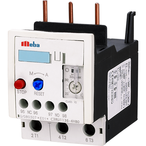 Interruptor de relé de MEBA C3RU1136son adecuados para la protección de sobrecarga y fase de los motores de CA con una frecuencia de 50 o 60Hz, voltaje de hasta 690 V, corriente de hasta 0.1-100a bajo un servicio de 8 horas o impuestos ininterrumpidos.