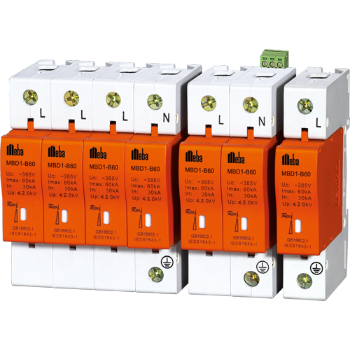 El dispositivo protector de sobretensiones de la serie MBD1-B (en adelante, llamado SPD) se usa adecuadamente en el sistema de suministro de alimentación IT, TT, TN-C, TN-S, TN-C-S y etc.Proteja del impulso de rayos directos e indirectos y otros transitorios sobre voltaje.Según las condiciones de IEC61643-1: 1998-02 estándar, dispositivo de protección de sobretensión de clase I, es un dispositivo protector contra sobretensiones de categoría B.SPD tiene dos modos de protección: MC y MD